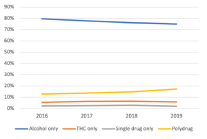 Most THC-positive drivers were impaired by multiple drugs (polydrug impairment)