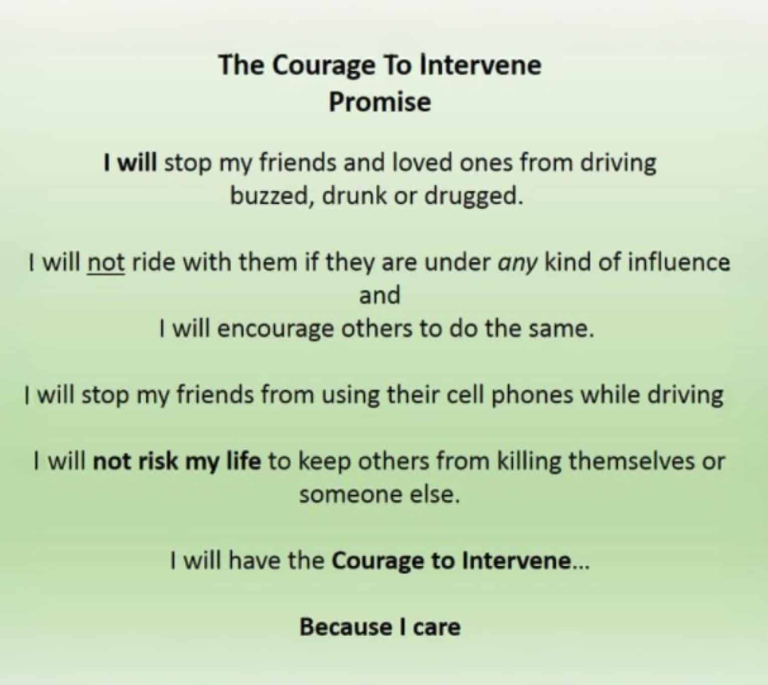 People across the country are signing the Courage to Intervene Promise and letting everyone know they will not ride with anyone who is drunk, drugged or distracted.